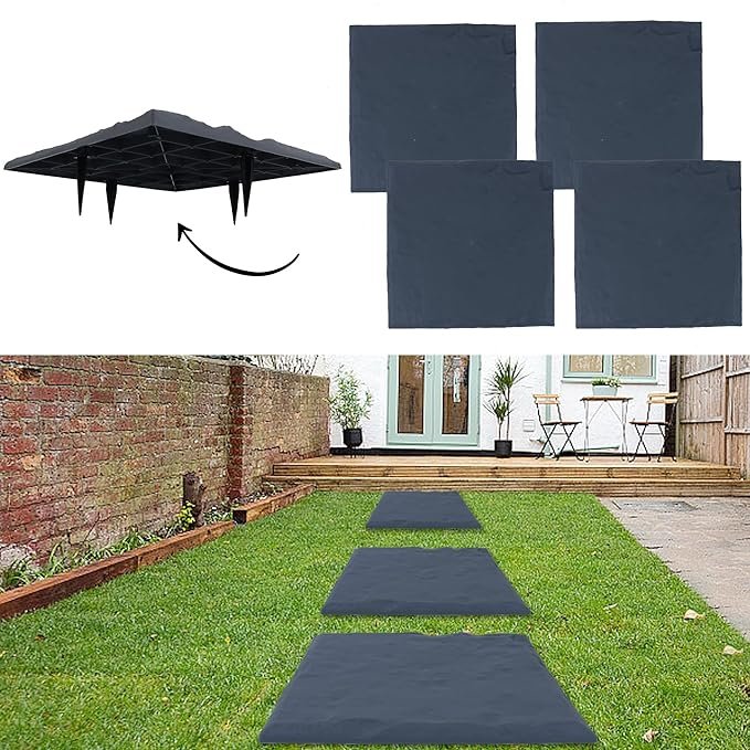 4Pcs Large Stepping Stones Outdoor Garden Walkway, Durable Plastic Pavers for Patio, Pathway, and Landscaping, Weatherproof Stepping Stones with Ground Stakes for Easy Installation